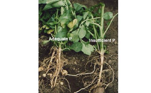 De ontwikkeling van de zijwortels wordt geremd. De knolopbrengst zal minder worden.
