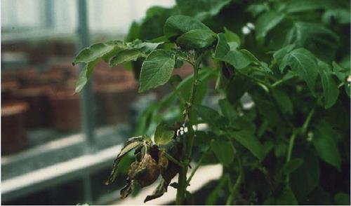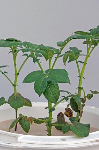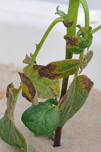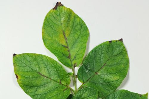 Knollen met kaliumgebrek laten zwarte plekken zien. Als ze doorgesneden worden, kleuren ze snel zwart. De plekken verschijnen meestal bij de vasculaire ring op de stolon aan het eind van de knol.
