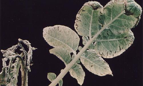 Kan verwisseld worden met de aardappelziekte (Phytophthera), maar mangaangebrek geeft geen geur af van necrose aan de stengelbasis.