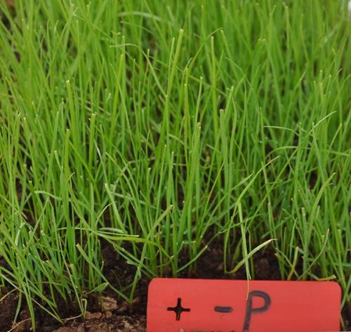 Verminderde groei en verwelking soms met paarsverkleuring. Punten van het oudere blad kunnen geel tot roodbruin verkleuren en kunnen afsterven. Voor de rest blijft de bladkleur donkergroen. Fosfaatopname is het hoogst in jonge planten. Gebrekssymptomen komen daarom het meest voor bij oudere planten als het fosfaatgehalte daalt.