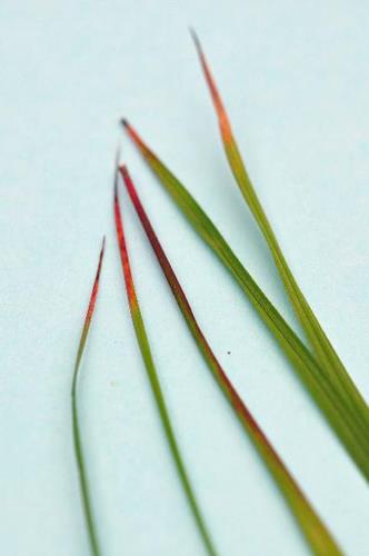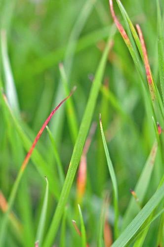 Verminderde groei en verwelking, soms met lichte paarsverkleuring.