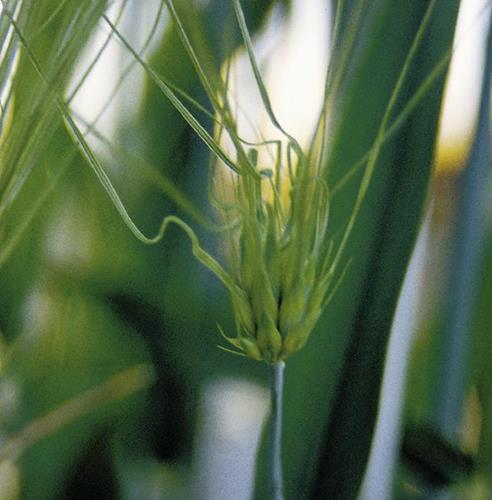 De aar is extreem kort met slechts zeer weinig korrels, de baarden zijn verdraaid.
