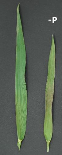 Planten met fosfaatgebrek zijn kleiner dan normale planten en hebben een paarse gloed op de donkergroene bladeren, vooral in het midden.