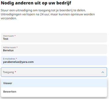 Het uitnodigen van andere gebruikers is voor iedereen die YaraPlus gebruikt: